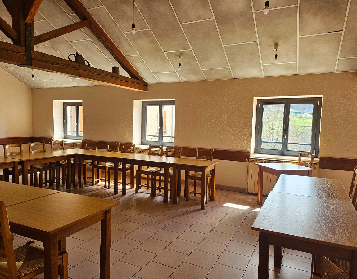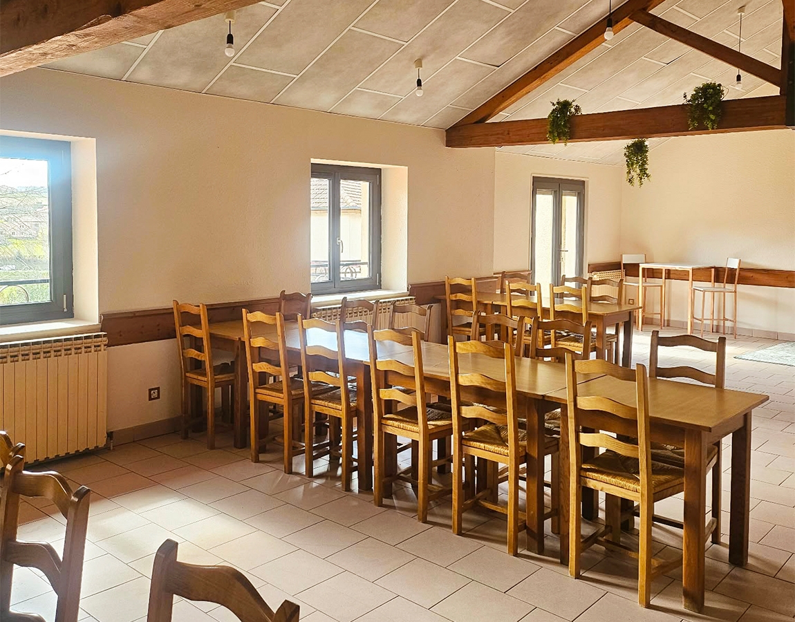 Notre salle peut accueillir jusqu’à 40 personnes. Elle est équipée de tables et chaises, d’une cuisine de chauffe, et dispose d’une terrasse.