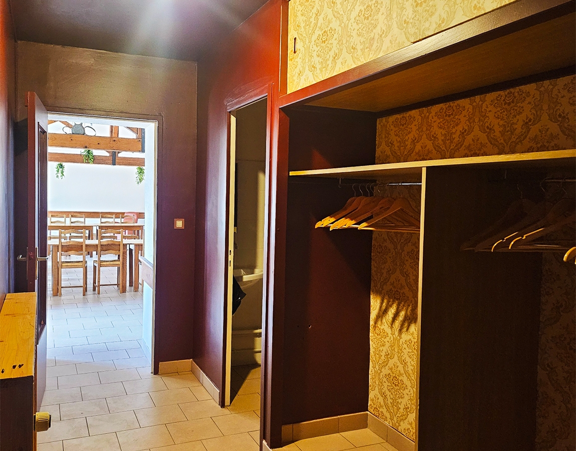 Située à l’étage (escaliers larges), elle comprend également des WC et un vestiaire indépendant.
